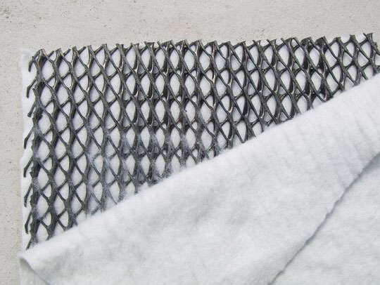 三維復(fù)合排水網(wǎng)是一種新型的排水土工材料。以高密度聚乙烯(HDPE)為原料,經(jīng)特殊的擠出成型工藝加工而成,具有三層特殊結(jié)構(gòu)。中間筋條剛性大,縱向排列,形成排水通道,上下交叉排列的筋條形成支撐防止土工布嵌入排水通道,即使在很高的荷載下也能保持很高的排水性能。雙面粘接滲水土工布復(fù)合使用,具有“反濾--排水--透氣--保護(hù)”綜合性能,是目前理想的排水材料。